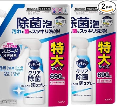 花王キュキュット 【まとめ買い】クリア除菌CLEAR泡スプレー 微香性(グレープフルーツ) 詰め替え 690ml 2個 除菌・消臭 油汚れ対応