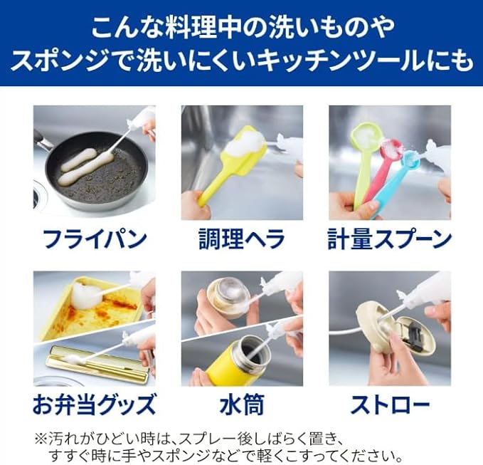 キュキュット クリア泡スプレーは、花王独自の泡洗浄テクノロジーで、届きにくい部分の汚れをスッキリ落とす食器用洗剤です。 水筒やお弁当箱、ストロー、保存容器など「スポンジが届かない」「洗いにくい」アイテムも簡単に洗えます。 ✔ 泡が密着して油汚れを分解 ✔ 除菌・消臭対応で清潔キープ ✔ スプレー後すすぐだけの簡単ケア 忙しい毎日の家事を効率化し、清潔で快適なキッチンライフをサポートします。