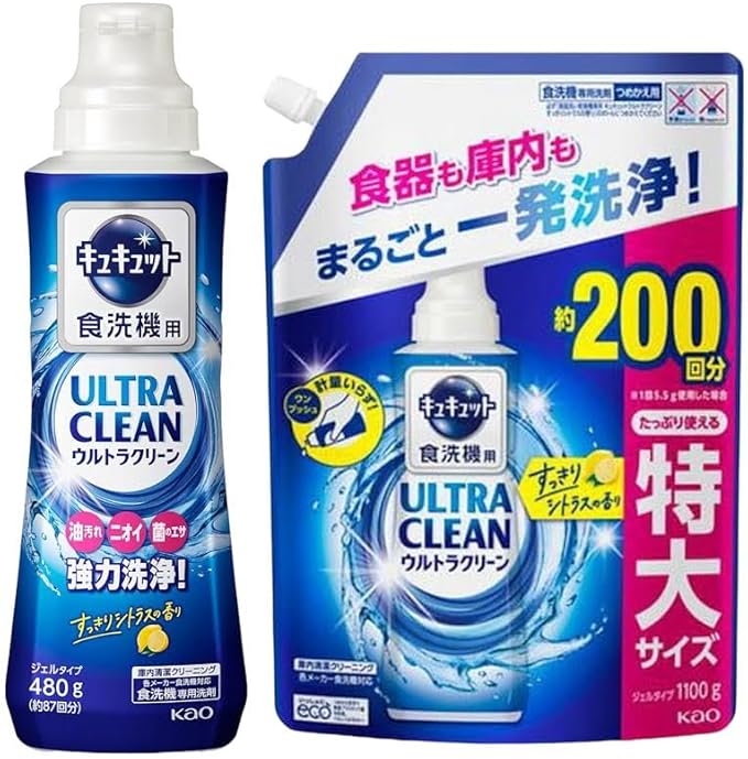 キュキュット ウルトラクリーン 食器用洗剤 食洗機用 食器も庫内もまるごと強力洗浄 すっきりシトラスの香り 本体480g+詰め替え1100gセット