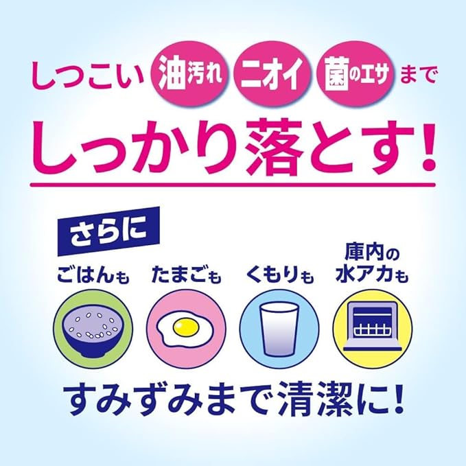 キュキュット ウルトラクリーン 食器用洗剤 食洗機用 食器も庫内もまるごと強力洗浄 すっきりシトラスの香り 商品紹介 脂汚れ・ニオイ 強力洗浄。 透きとおる輝き食洗機用キュキュット史上"最強"洗浄力 『油とタンパク質の複合汚れのしつこく残るヌルつき脂汚れまで強力洗浄。 さらに、ごはんも、たまごも、くもりもニオイもスッキリ。 透きとおる輝きに。 油汚れが食器や庫内に汚れ移りするのを防ぎ、庫内清潔クリーニング。 ワンプッシュするだけで1回分を適量投入できる本体ボトル 。すっきりシトラスの香り。 ◆今まで落とし切れなかったしつこく残るヌルつき脂汚れまで強力洗浄 ◆ニオイもスッキリ除臭⇒くすみのない透きとおる輝きに ◆片手でワンプッシュ簡単計量 使用上の注意 ●子供の手の届く所に置かない。 ●認知症の方などの誤飲を防ぐため、置き場所に注意する。 ●用途外に使わない。