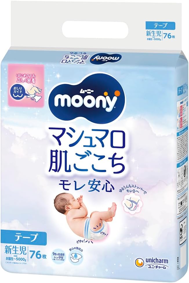 【テープ 新生児サイズ】ムーニー マシュマロ肌ごこち モレ安心 オムツ(お誕生~5000gまで)76枚