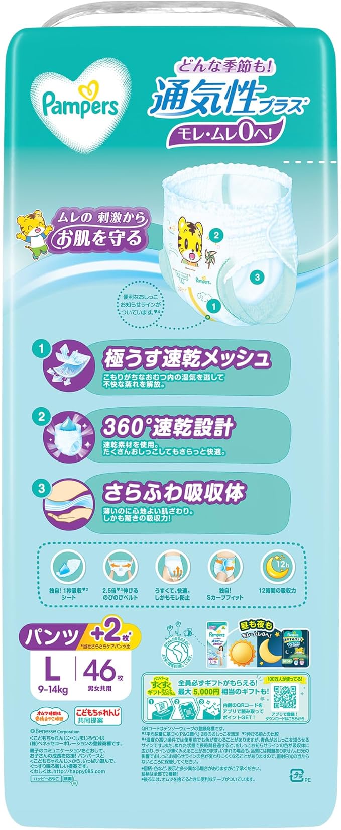 【パンツ Lサイズ】 パンパース オムツ 通気性プラス (9~14kg) 184枚(46枚 4パック) [ケース品]