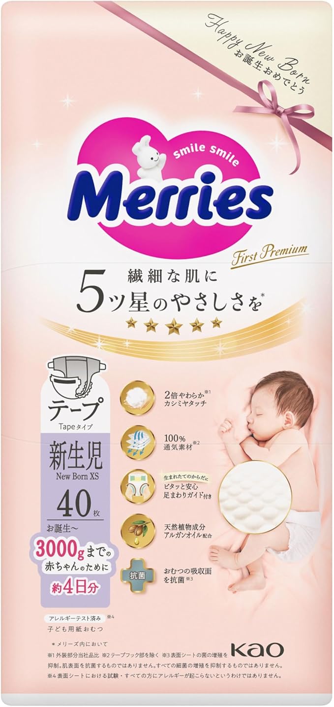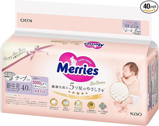 【テープ 新生児サイズ】 メリーズ ファーストプレミアム (お誕生~3000g) 40枚 2倍やわらかカシミヤタッチ