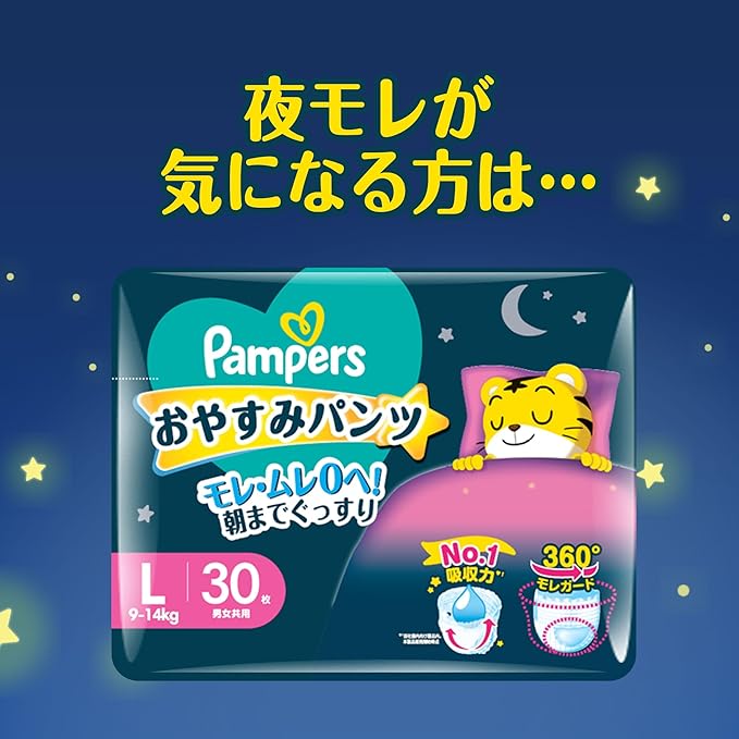 最長12時間、一晩中の吸収力 パンパースの吸収力で、脚からも背中からもうんち・おしっこモレ防止。