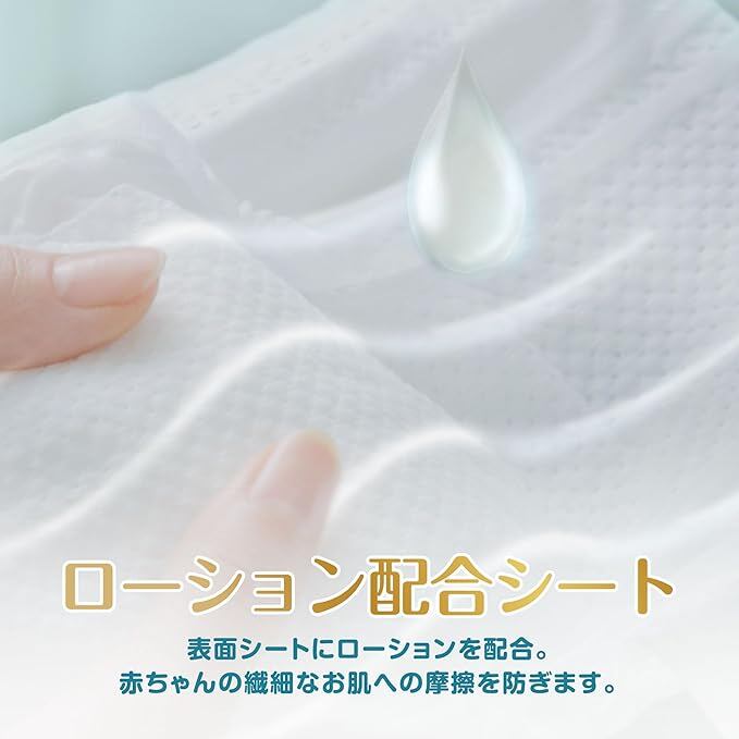 【97%のママがまた使いたいと答えた***】 赤ちゃんの肌に、とびっきり柔らかい素材を選びたいあなたへ。 肌摩擦を軽減^。香料・パラベン・ラテックス無配合。最高級の素材^で作られています。 ***2022年9月すくすくギフトポイント会員965名への調査 ^'肌へのいちばん'以外の当社製品比