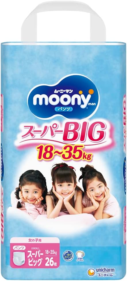パンツ、ぱんつ、オムツ、おむつ、紙おむつ、かみおむつ、ユニチャーム、プレミアム、パンツ、スーパービッグ、女の子、女、ムーニーマン