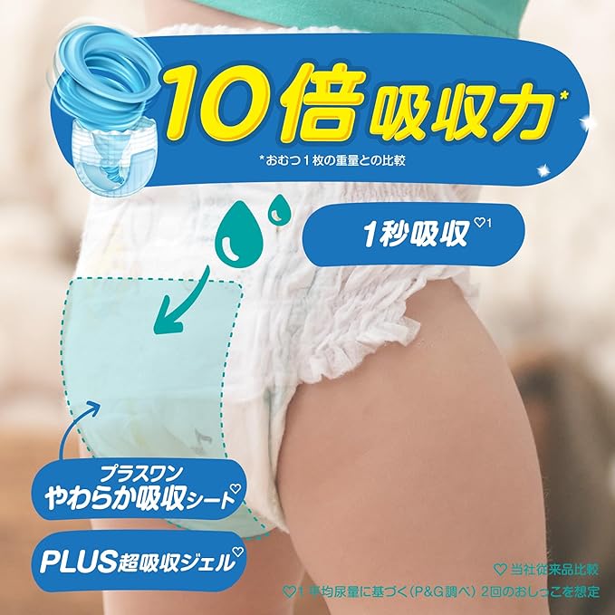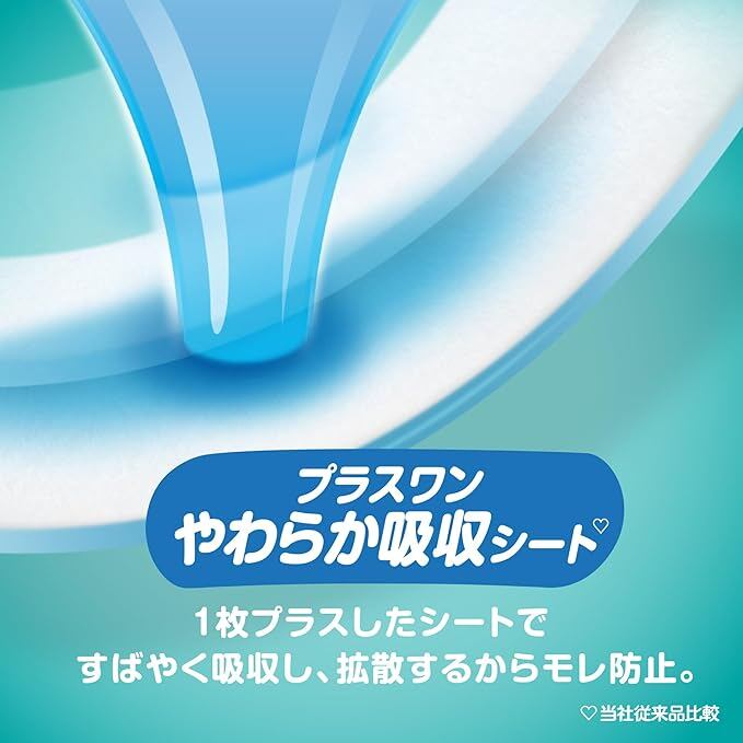 【独自!1秒吸収シート^^】スポンジのように即吸収、お肌さらさら ^^平均尿量に基づく(P&G調べ)2回のおしっこを想定
