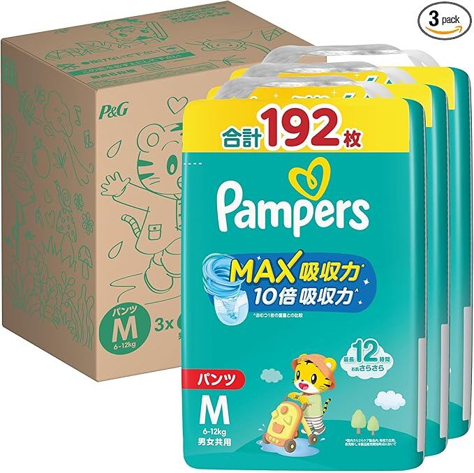 パンパース 【パンツ Mサイズ】 オムツ さらさらケア MAX吸収力 (6~12kg) 192枚(64枚 3パック) [ケース品]
