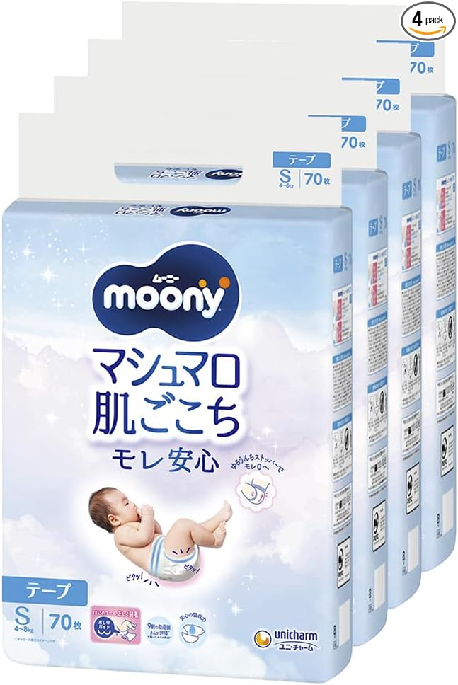【テープ Sサイズ】 ムーニー マシュマロ肌ごこち モレ安心 オムツ(4~8kg)280枚(70枚 4) [ケース品]