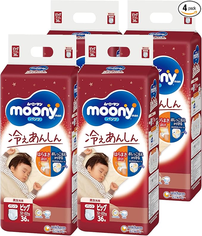 【パンツ ビッグサイズ】ムーニーマン 冷えあんしん 男女共用 オムツ(12~22kg)144枚(36枚 4)[ケース品]