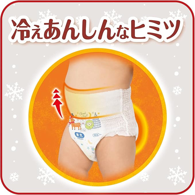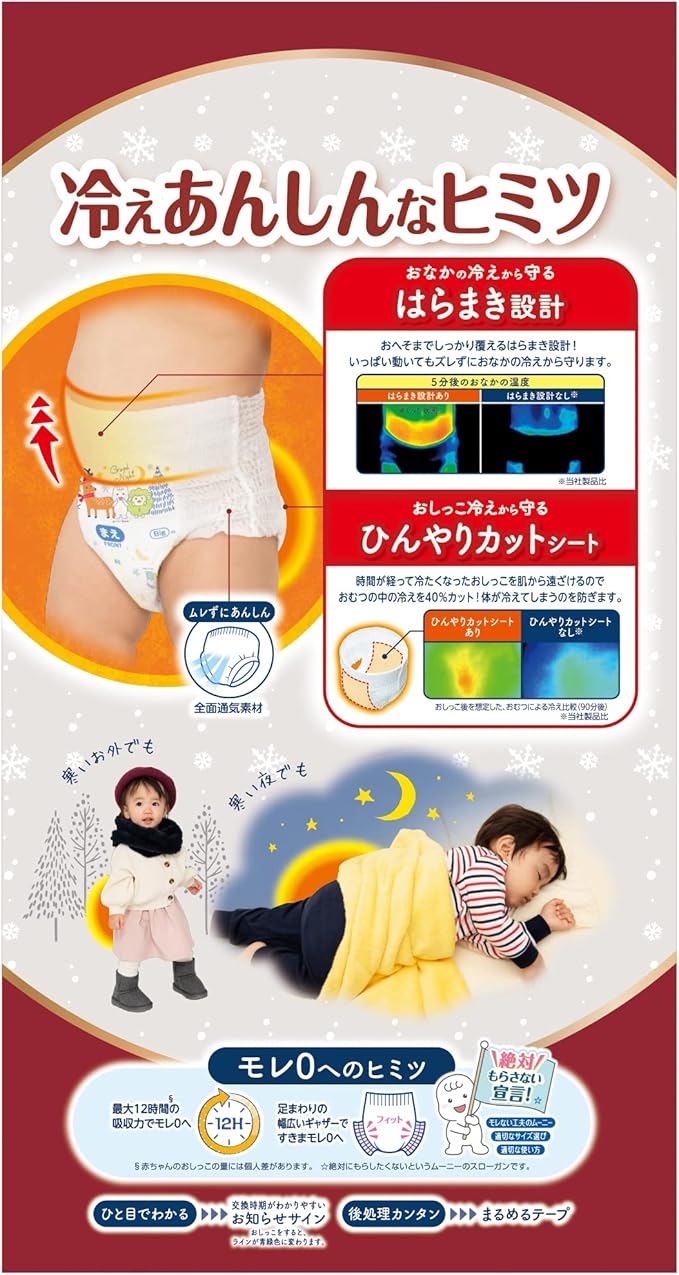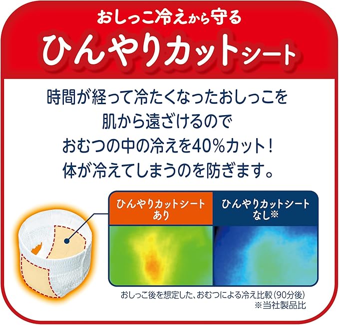 はらまき設計とひんやりカットシートで冬の冷え対策! 寒さやおしっこ後の冷えから赤ちゃんの身体が冷えてしまうのを防ぎます。