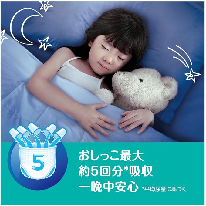 パンパース オムツ パンツ さらさらパンツ ビッグより大きいサイズ。 ・最長12時間お肌さらさらゴールデンスリープ ※赤ちゃんの成長にとって特別な、一晩中邪魔されない眠りをパンパースは「ゴールデンスリープ」と呼んでいます。 ・独自の1枚多いさらさらシートで、おしっこもムレも肌によせつけません。 ・新技術。 ウエスト超ふわふわ革命、新技術で、お腹まわりを締め付けずにやさしく包み込むおむつ。 ・もちろん、通気性ばっちりの紙オムツ。コットンシート* ムレを逃がして赤ちゃんのお肌は快適。 ・Sカーブで快適フィット 遊びざかりの動きにあわせて伸び縮み自由自在の紙おむつ。 ・モレ防止も最長12時間。パンパースの吸収力と、モレ防止ギャザーで、もちろんモレ安心。