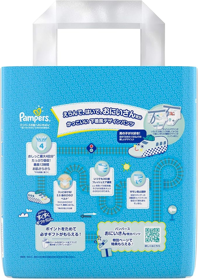 パンパースの肌へのいちばん※ ※“肌へのいちばん"以外の当社製品比 おにいさん気分パンツ自分ではきたくなる かっこいい 下着風デザインえらんで、はいて、おにいさん気分 男の子が大好き! 自分ではきたくなるような 楽しいデザイン
