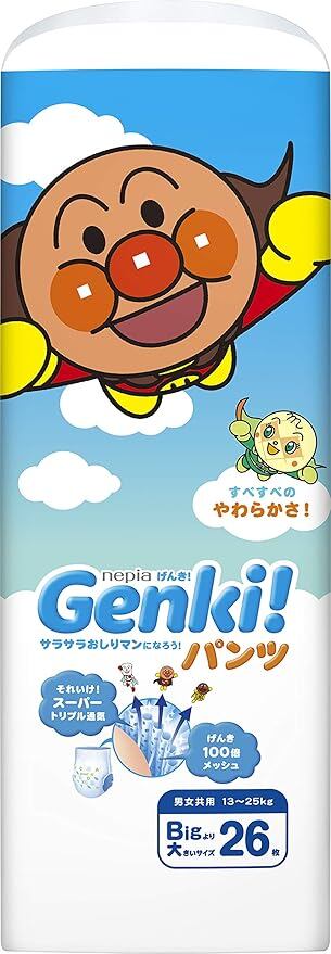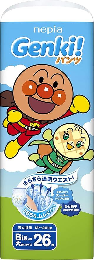 【パンツ BIGより大きいサイズ】ネピアGENKI! アンパンマン おむつ (13~28kg)26枚 単品