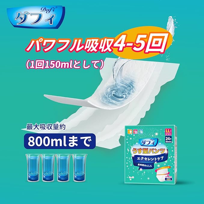 ダフィ 大人用紙おむつ パンツタイプ 24枚 4回吸収 3Lサイズ【ADL区分:立てる・座れる方】 紙おむつ 大人用パンツ 長時間吸収 かみおむつ 大人用 リハビリパンツ 柔らかい 介護パンツ モレ防止 安心 尿漏れ対応