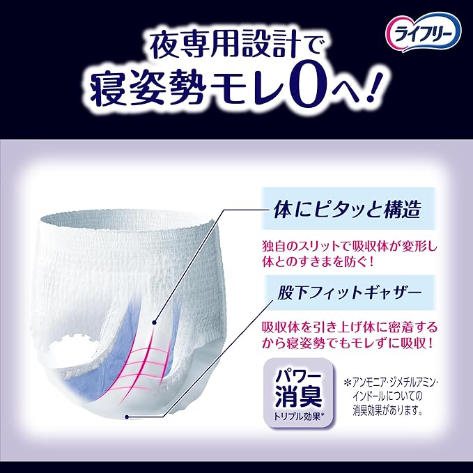 高齢者特有の足周りのモレを防ぐ夜用パンツ