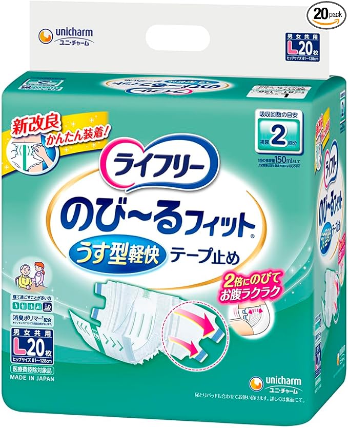 ライフリー テープ止めおむつ のび~るフィットうす型軽快テープ止め Lサイズ 20枚 2回吸収 【寝て過ごすことが多い方】