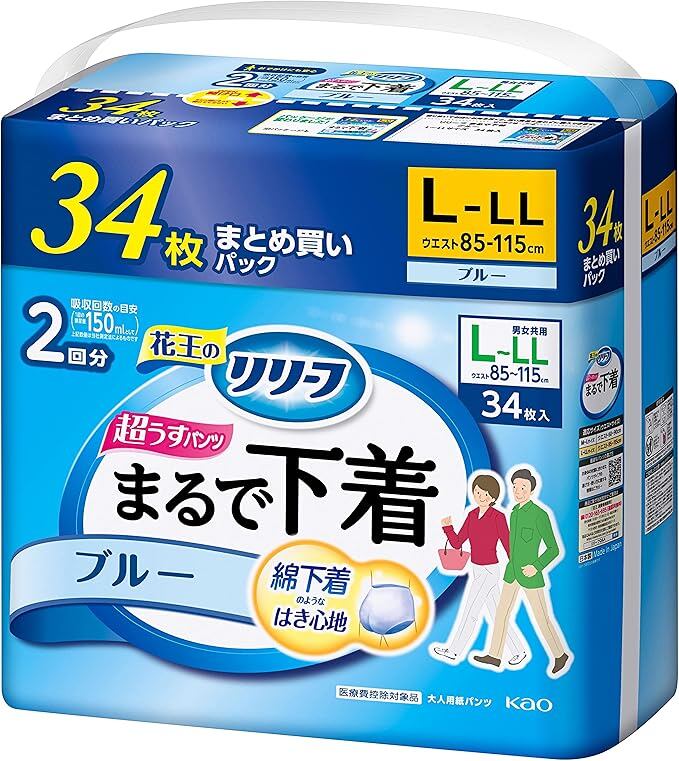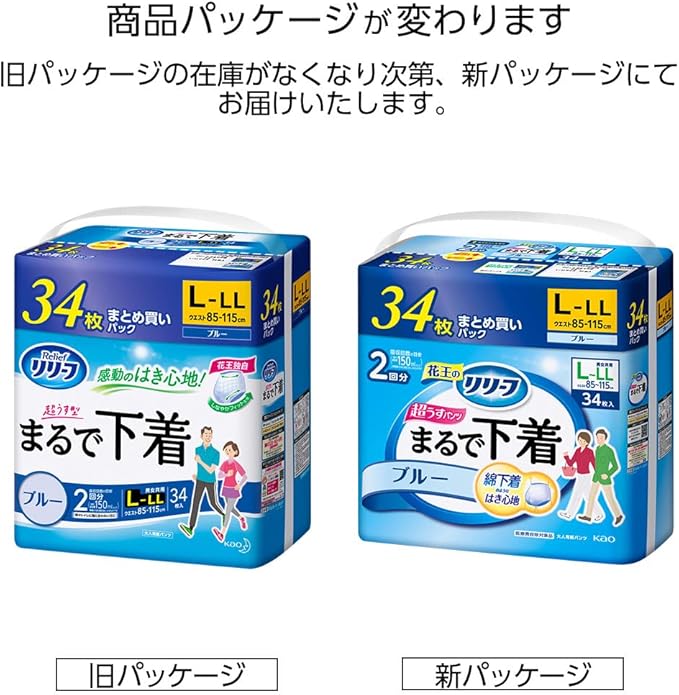 【旧パッケージ】リリーフ パンツタイプ まるで下着 2回分 ブルー Lサイズ34枚