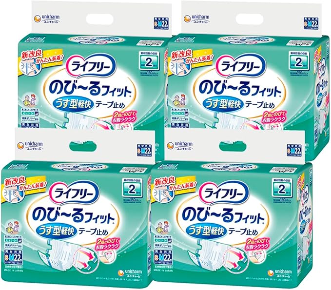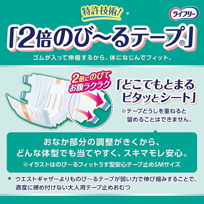 ライフリー 【ケース販売】 テープ止めおむつ のび~るフィットうす型軽快テープ止め S~Mサイズ 88枚(22枚 4)2回吸収 【寝て過ごすことが多い方】