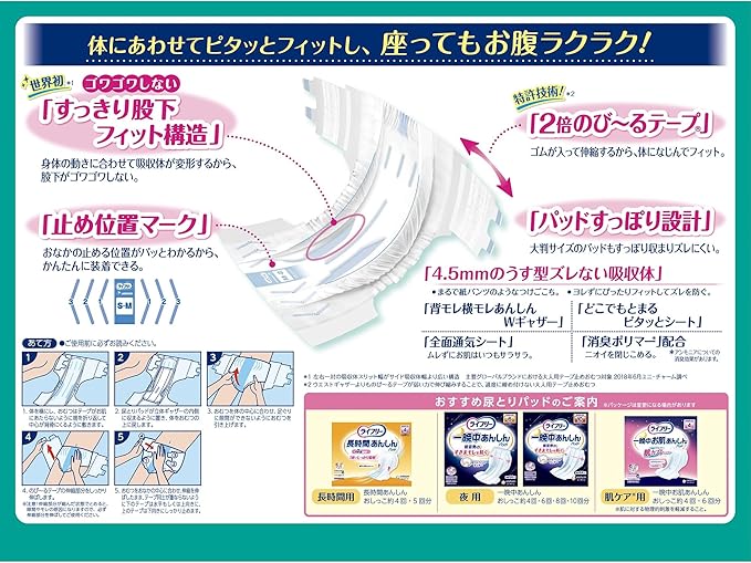 ●介護力サポートと自立意欲維持を両立、身体になじんでフィットするうす型テープ止め。