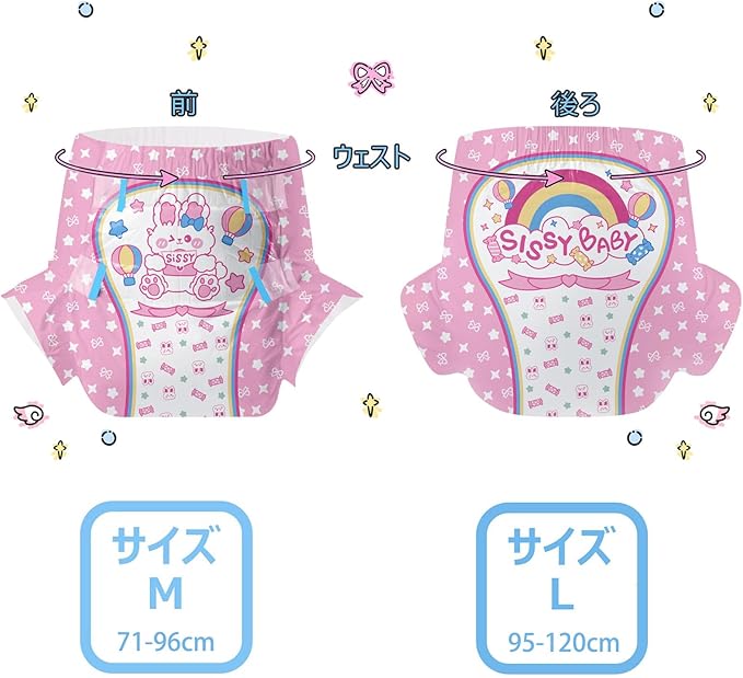 CutiePlusU 大人用おむつ2枚セットサンプル、男女失禁パンツ、ラベル付き、吸収力の高いドライ表面- シシー・ベイビー(L 95-120cm)