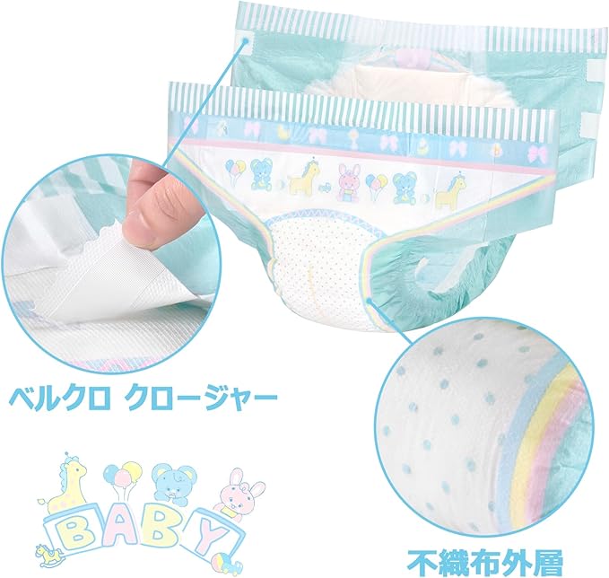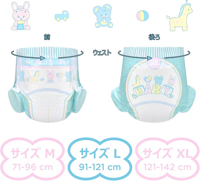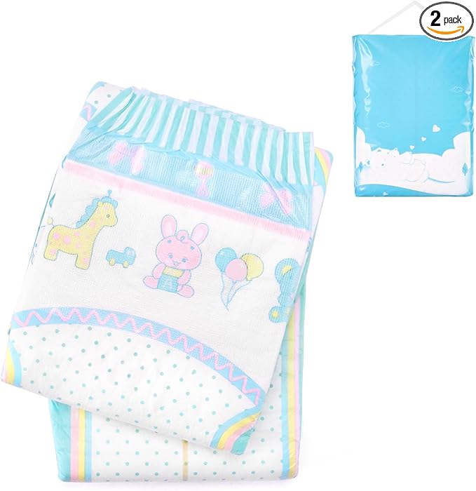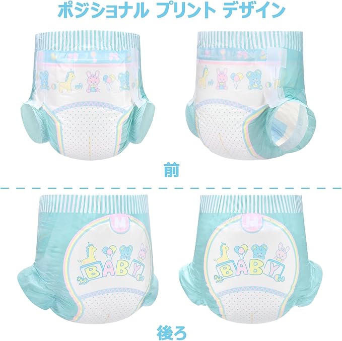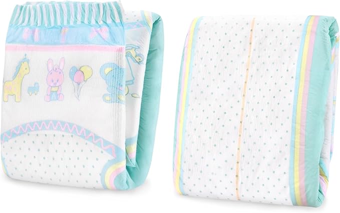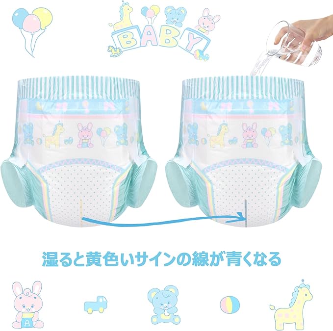 LittleForBig 大人用不織布おむつ 2枚パック 可愛い絵柄【パレードをしているベビー】変色お知らせサインの線 厚型 高い吸収力 ベルクロ 総計2枚入M