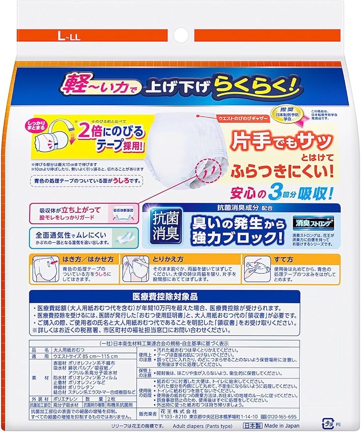 すっきりとしたうす型。なのに、しっかり吸収して安心。「股下フィット吸収体」が股からのモレをしっかりガードします。銀(Ag)含有の抗菌消臭成分配合で雑菌の繁殖を抑えニオイを防ぎます。下着のように上げ下げしやすくスルッとはけて、ふらつきにくい設計。