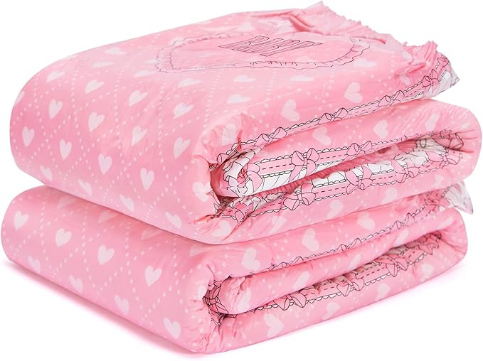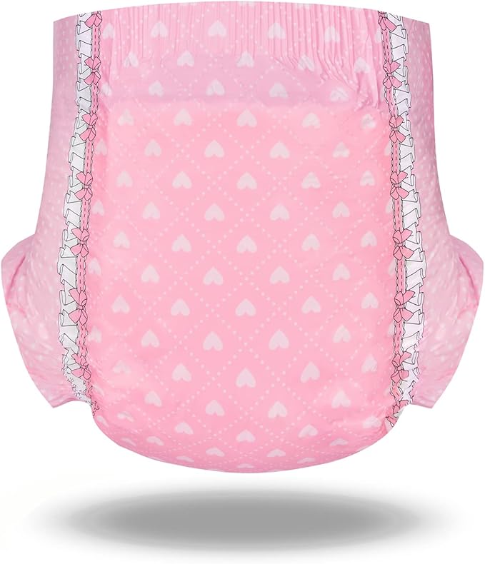 LittleForBig大人用おむつ ハート柄2枚パック【照れくさいベビー】厚型 数回吸収 介護オムツ テープ型 2枚入 ピンク[Lサイズ]