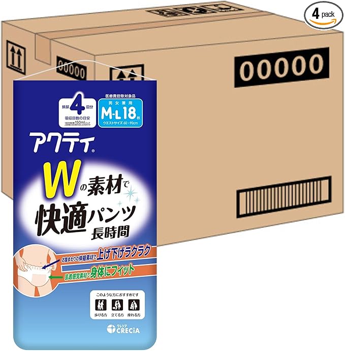 アクティ 【ケース販売】 Wの素材で快適パンツ長時間M-L18枚 4入 4回吸収