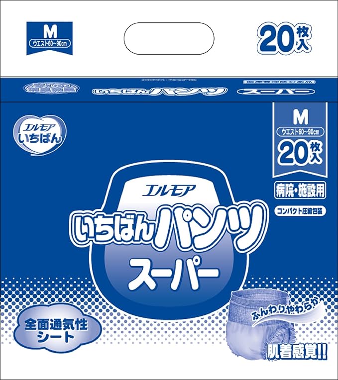 【病院・施設用】 エルモアいちばん パンツ スーパー Mサイズ 20枚入 【ADL区分:立てる・座れる方】