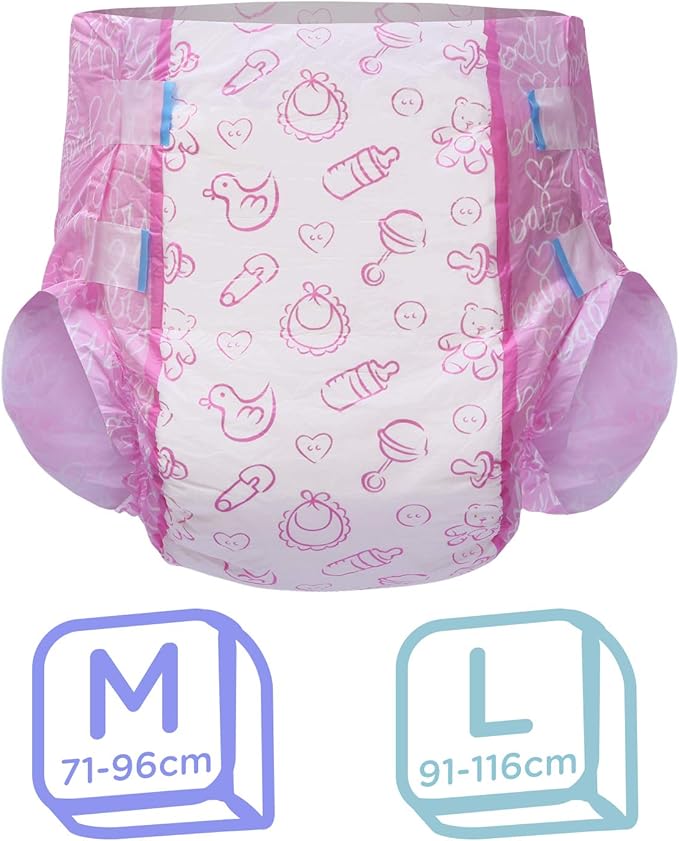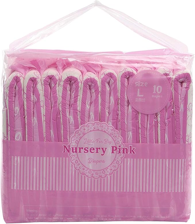 LittleForBig大人用オムツパンツ 可愛い絵柄【哺乳瓶柄 ピンク】おむつ 10枚入 L