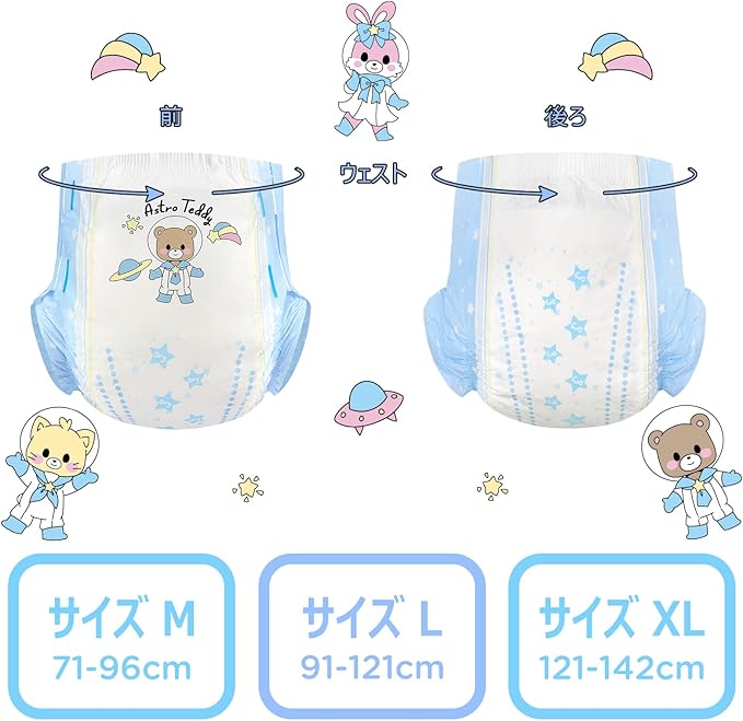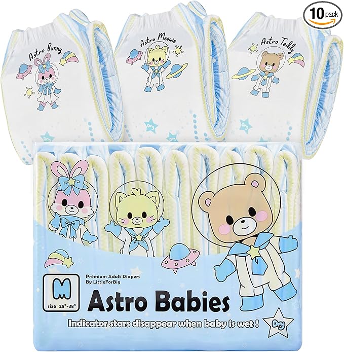 LittleForBig大人用おむつ 3種絵柄アソート 10枚パック【ベビー宇宙員】厚型 数回吸収 介護オムツ テープ型 10枚入[Mサイズ]