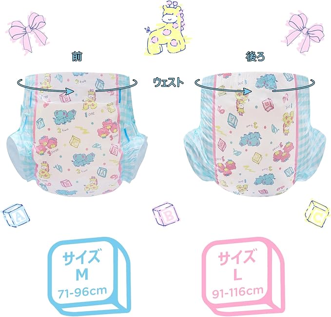 LittleForBig大人用おむつ 可愛い絵柄【動物園】アニマルパーティーオムツパンツ 10枚[L]