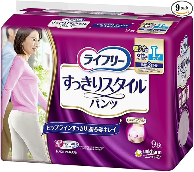 ライフリー パンツタイプ すっきりスタイルパンツ Lサイズ 9枚 女性用 2回吸収 【超うす型】【下着のようなはき心地】