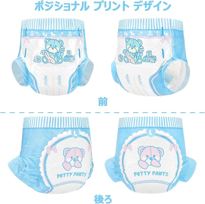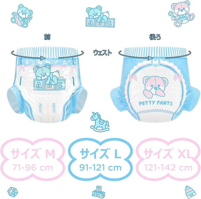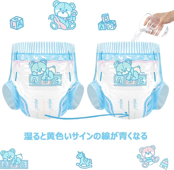 LittleForBig大人用おむつ 3種絵柄アソート【テディパンツ】変色お知らせサインの線 厚型 高吸収 テープ型 2枚入M