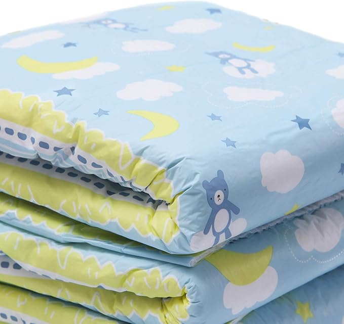 可愛い元気な青いくまちゃんと黄色い月、白い雲の絵柄。さらに、さらに、肌触りが良くさらっと快適。