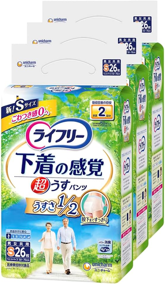 ライフリー パンツタイプ 下着の感覚超うす型パンツ Sサイズ 78枚(26枚 3) 2回吸収 大人用おむつ【お出かけに安心】 [ケース品]