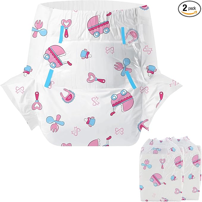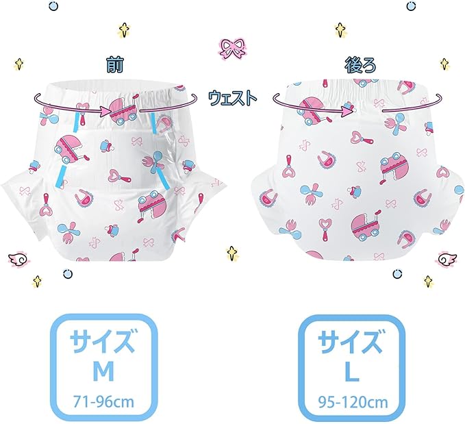 CutiePlusU 大人用おむつ2枚セットサンプル、男女失禁パンツ、ラベル付き、吸収力の高いドライ表面- 赤ちゃん夢(L 95-120cm)