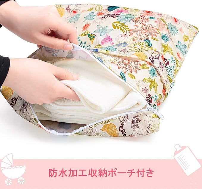 Damero 布おむつ 5層竹繊維構造 12枚入 吸水 通気性 再利用可能 成形ベビー布オムツ 収納ポーチ付き