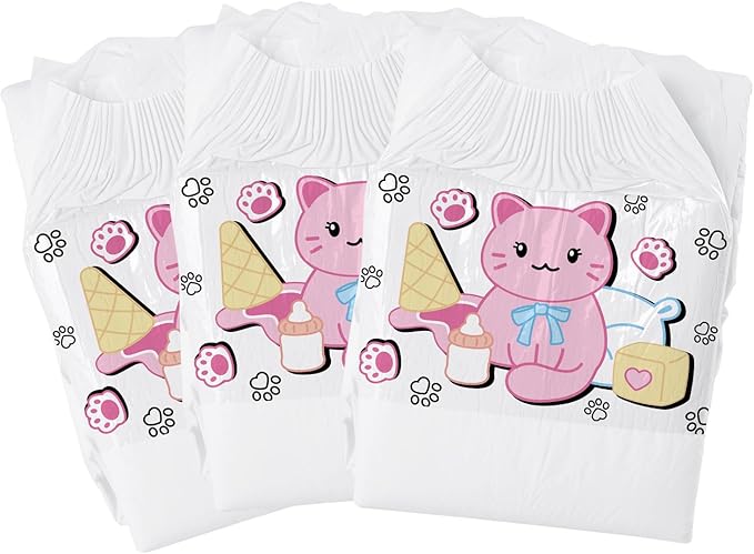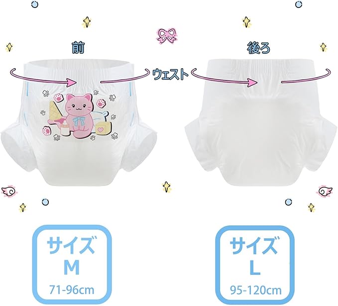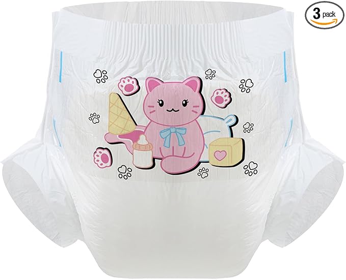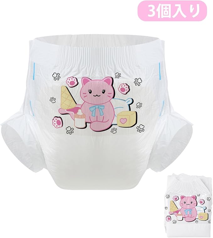 CutiePlusU 大人用おむつ3枚セットサンプル、男女失禁パンツ、ラベル付き、最大夜間吸収率-ホワイトバックプレーン かわいいキティ(L 95-120cm)