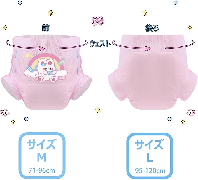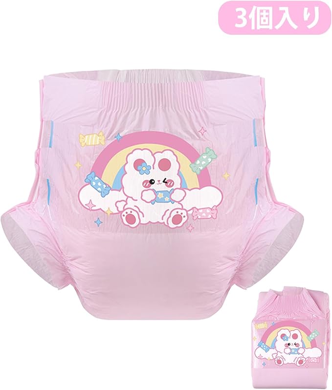 CutiePlusU 大人用おむつ3枚セットサンプル、男女失禁パンツ、ラベル付き、最大夜間吸収率-ピンクバックプレーン かわいいウサギ(M 71-96cm)