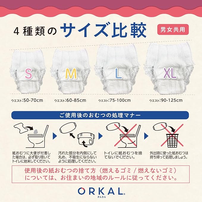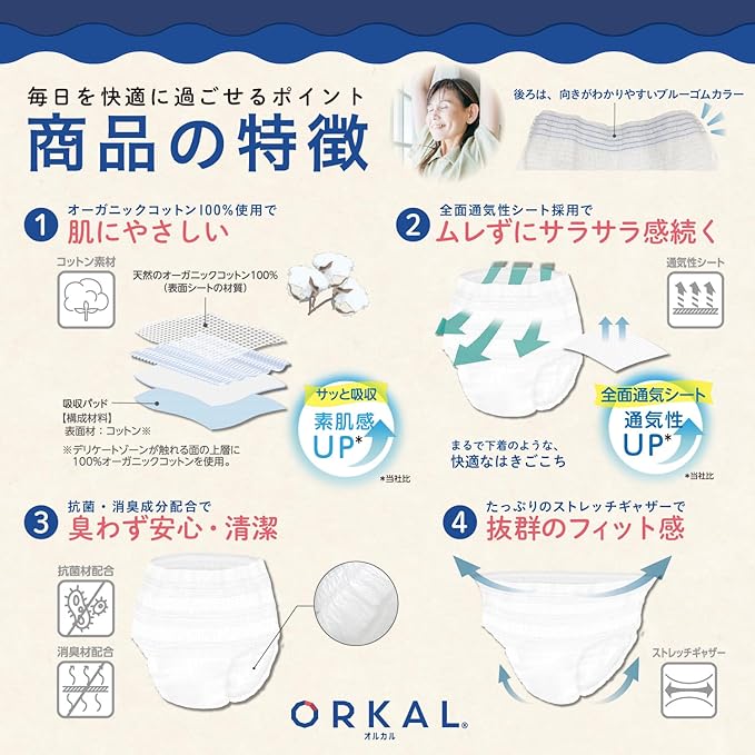 オルカル 大人 おむつ うす型 大人用 紙おむつ オーガニックコットン 男性 女性 吸収量 2回 XL サイズ 介護 ORKAL 10枚 6パック