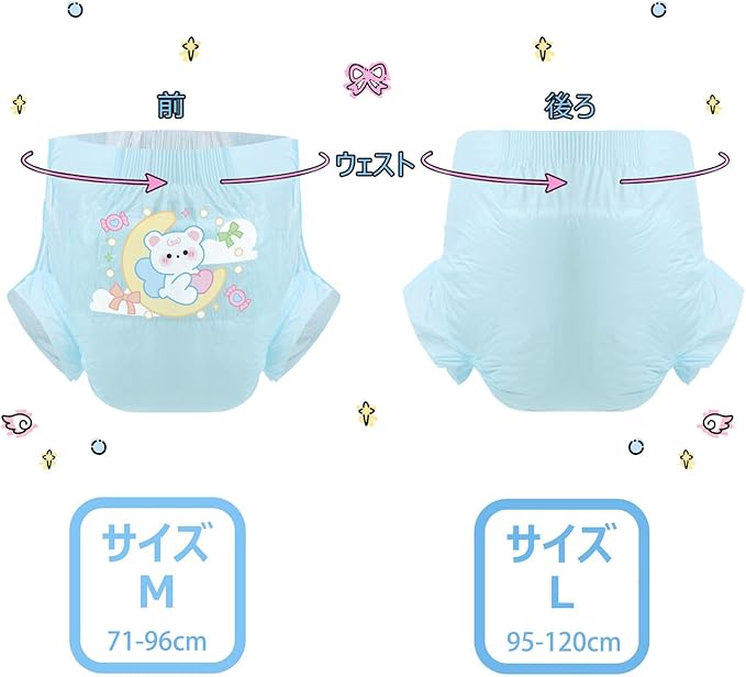 可愛いデザインで快適:これらの大人用おむつは、おしゃれでかわいいデザインと快適さを兼ね備えており、遊び心のあるアプローチで失禁ケアをスタイリッシュにサポートします