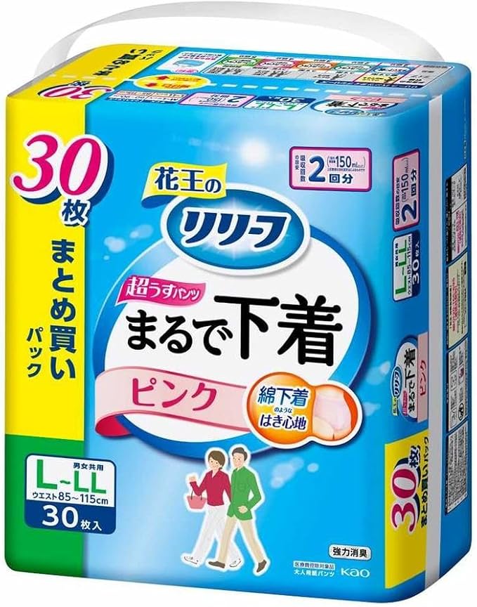 【大人用紙おむつ類】花王 リリーフ パンツタイプ まるで下着 2回分 ピンク L~LL 30枚入
