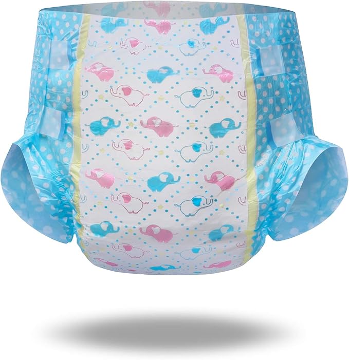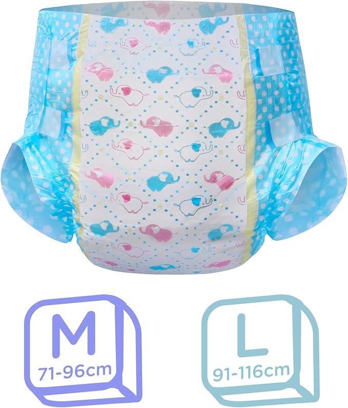 LittleForBig大人用オムツパンツ 可愛い絵柄【象ちゃん】おむつ 青 2枚入 L