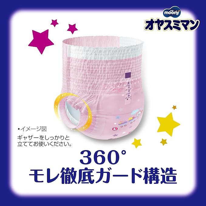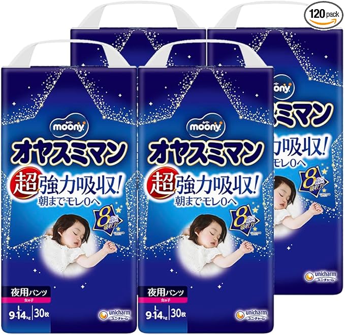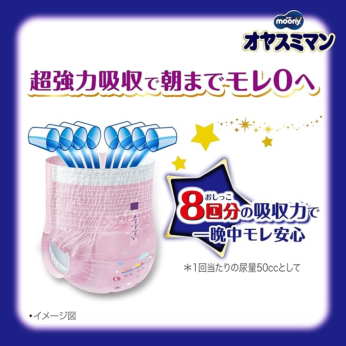 【パンツ Lサイズ】 ムーニー オヤスミマン 女の子 夜用パンツ オムツ(9~14kg)120枚(30枚 4)【ケース品】