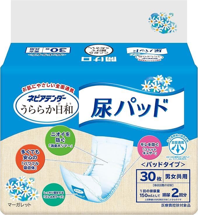 ネピアテンダー うららか日和 尿パッド 30枚 (テープタイプ用) 【ADL区分:寝て過ごす事が多い方】