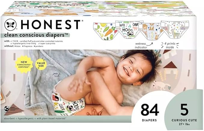 ホネスト クリーンコンシャス おむつ(テープ式)サイズ5(~12kg)84枚入 4種類の柄 植物由来素材・サステナブル・低刺激設計