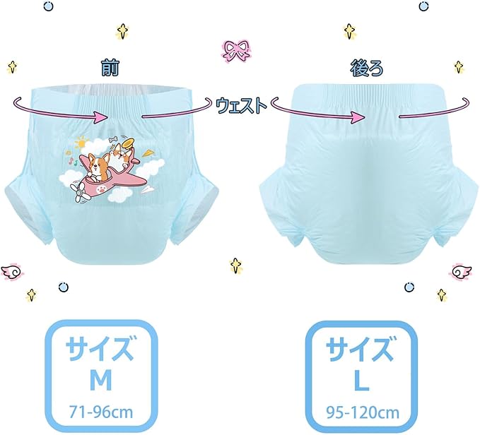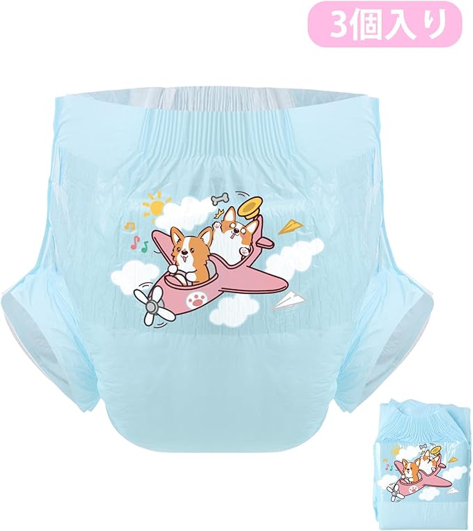 CutiePlusU 大人用おむつ3枚セットサンプル、男女失禁パンツ、ラベル付き、最大夜間吸収率-ブルーバックプレーン コーギー犬の運転手(M 71-96cm)