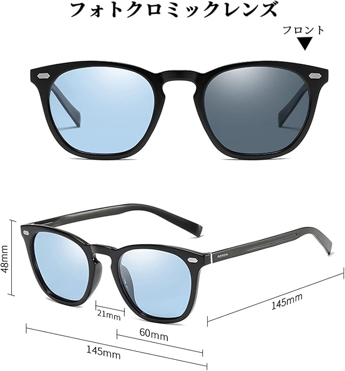 【ご注意】調光レンズとは太陽光の紫外線の強弱によって変色しますので、社内、室内、曇り空など紫外線の弱いでは変色調光が弱くなることを予めご了承ください。調光効果につきましては付属の紫外線照射灯(ブルーライト)とテストカードにてご確認ください。